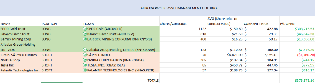 10/30/2025 9:48PM EST: Aurora Pacific Asset Management® is projecting U.S Markets to enter a severe correction. The firm is currently positioned short against U.S Equity Futures going into Q1 2026.